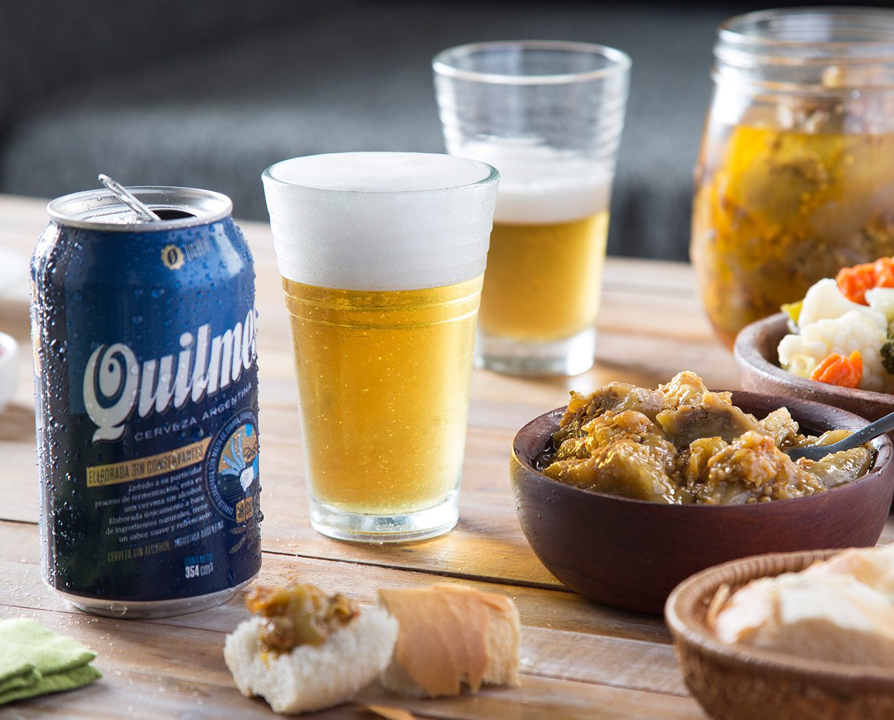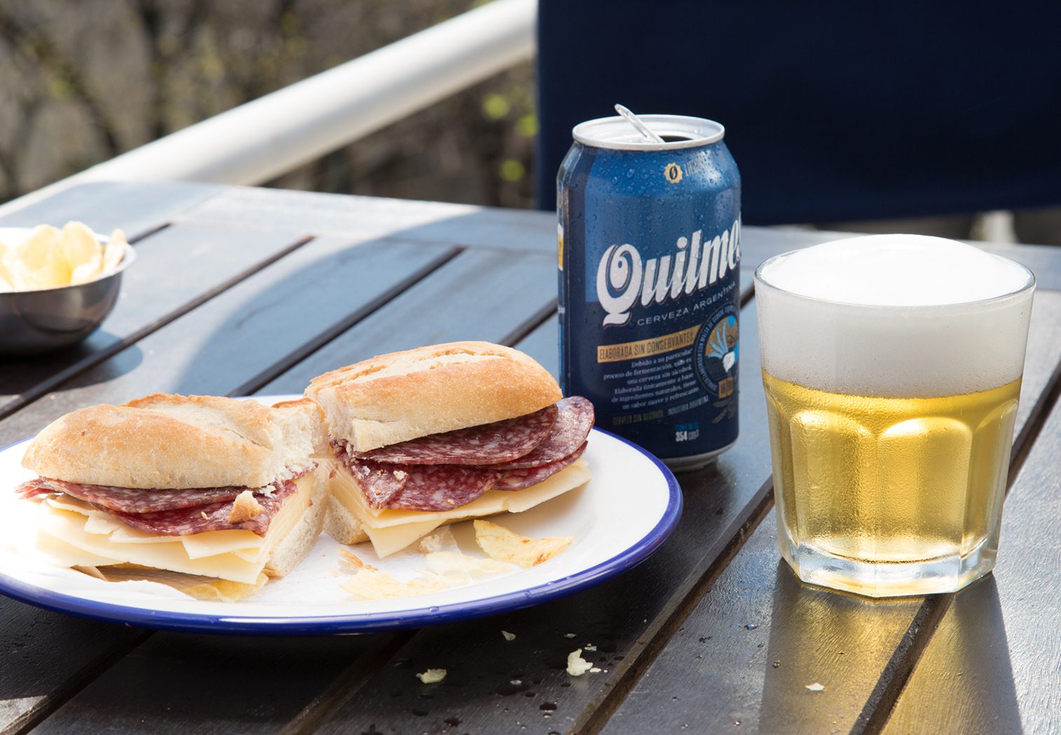 Maridaje: Sandwich de salame y queso, escabeche, bife de chorizo con ensalada.